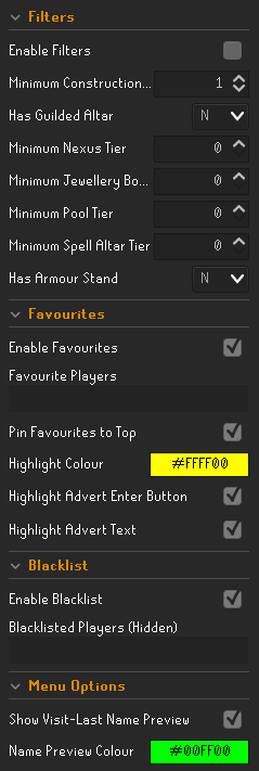 - Filters config that will hide advertisements that don't meet certain requirements.